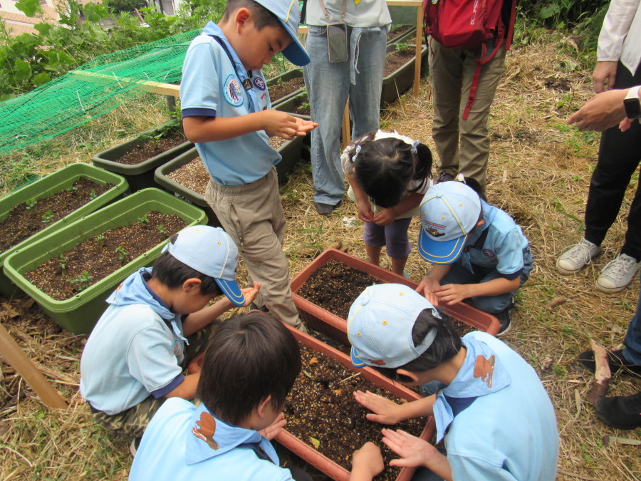バラマキゲーム終了後、枝豆とミニトマトの種まきをしました。