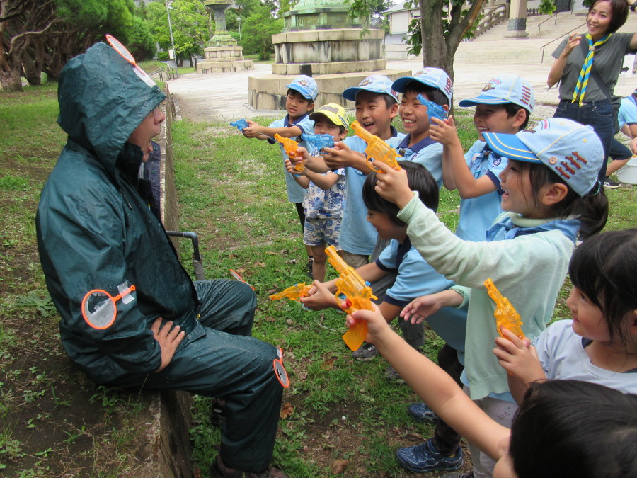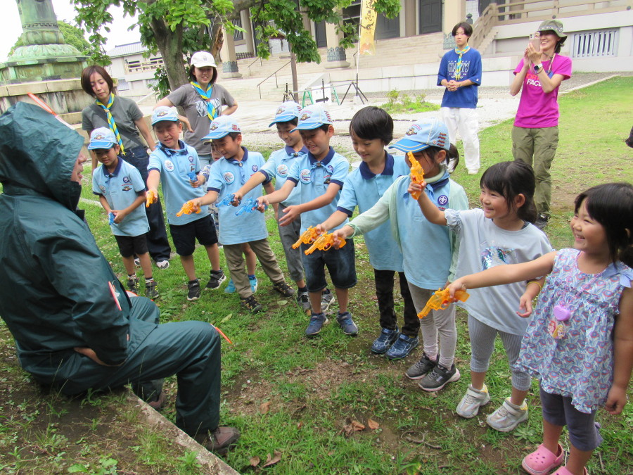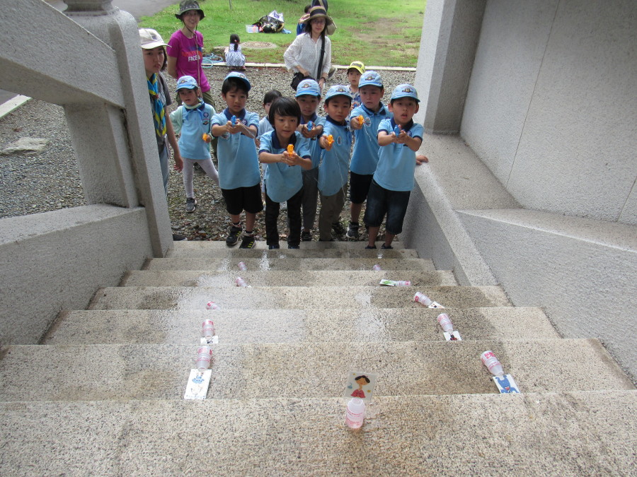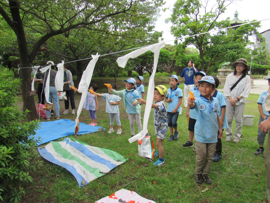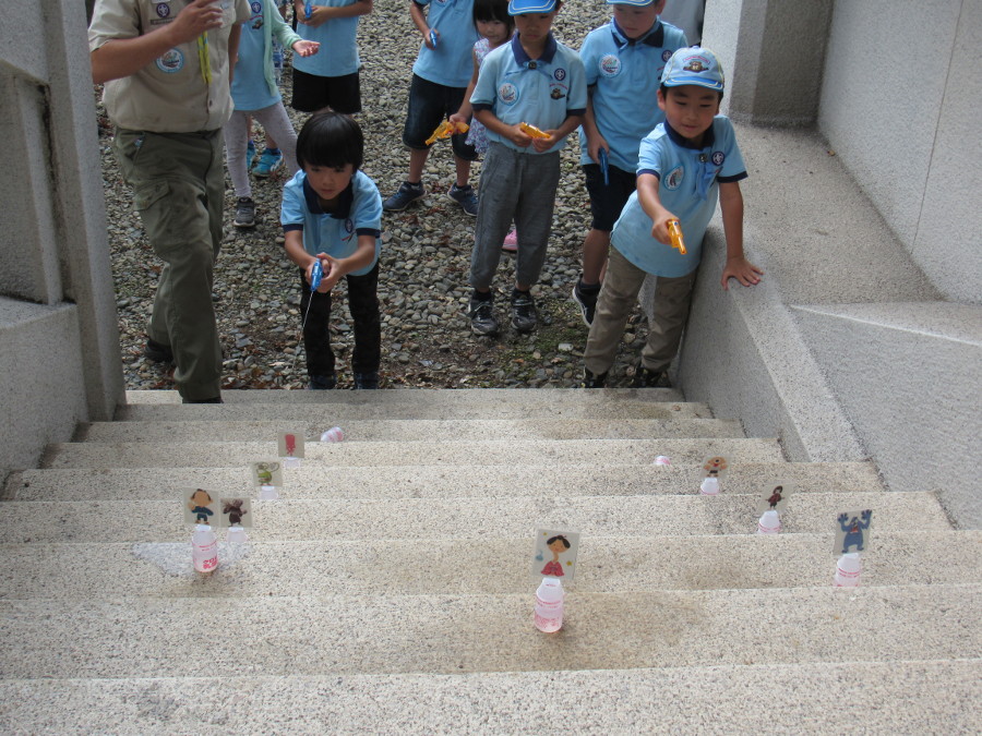 總持寺大祖堂前にて水鉄砲を使った水あそびをしました。