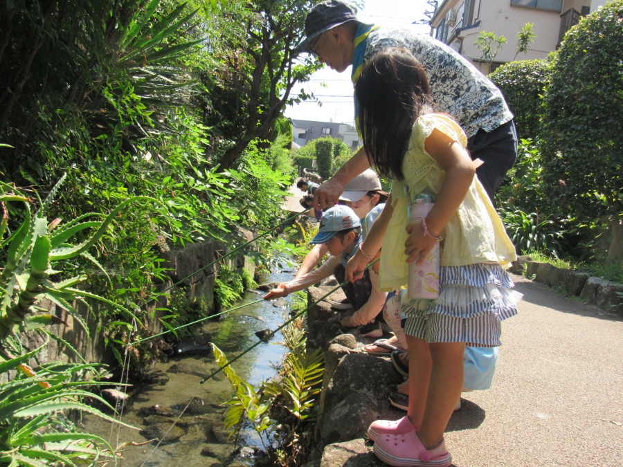 鶴見区東寺尾にある「せせらぎ街道」に行き、ザリガニ釣りをしま