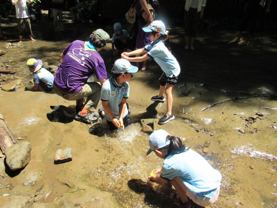 今回もアヒルレースやダム作りをして、元気いっぱい川遊びを楽し