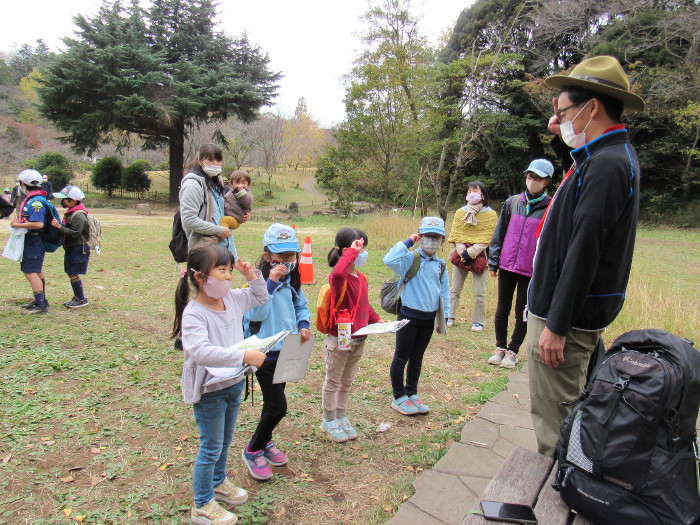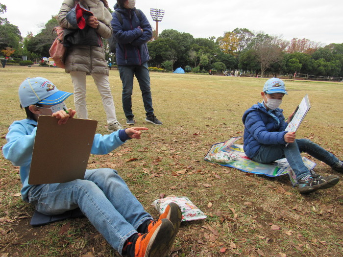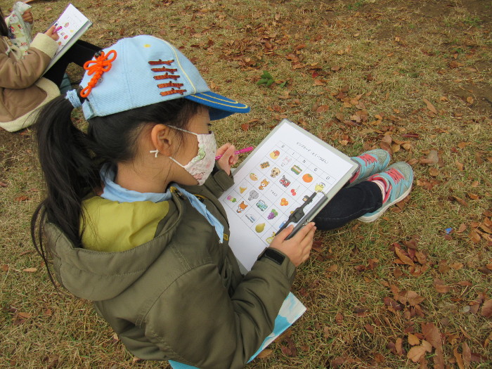 はじめに園内マップと回答用紙を配り、公園内5か所のチェック