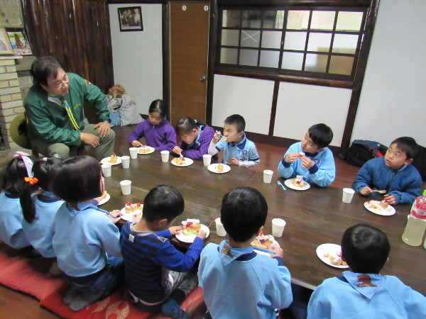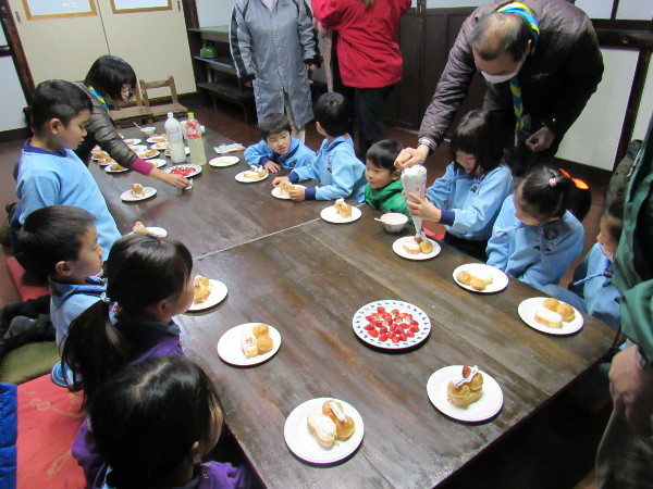 スカウトたちは落としたお菓子をゲットし喜びました。