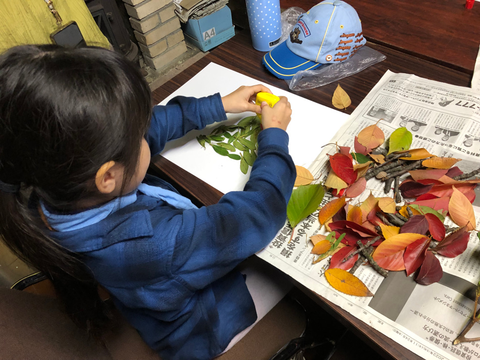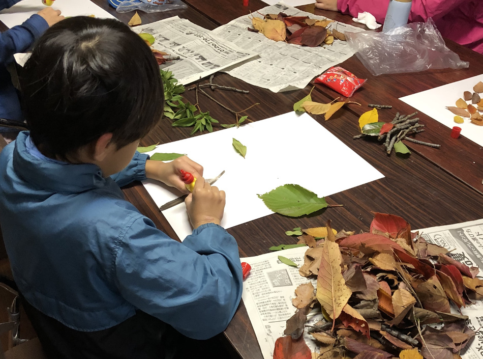 「秋の工作」と題し、落ち葉や小枝を使った工作をしました。