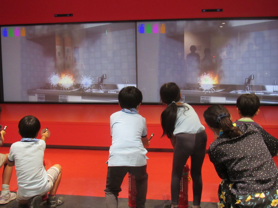 を鑑賞した後、消火器の使い方・避難までの流れを疑似体験(災