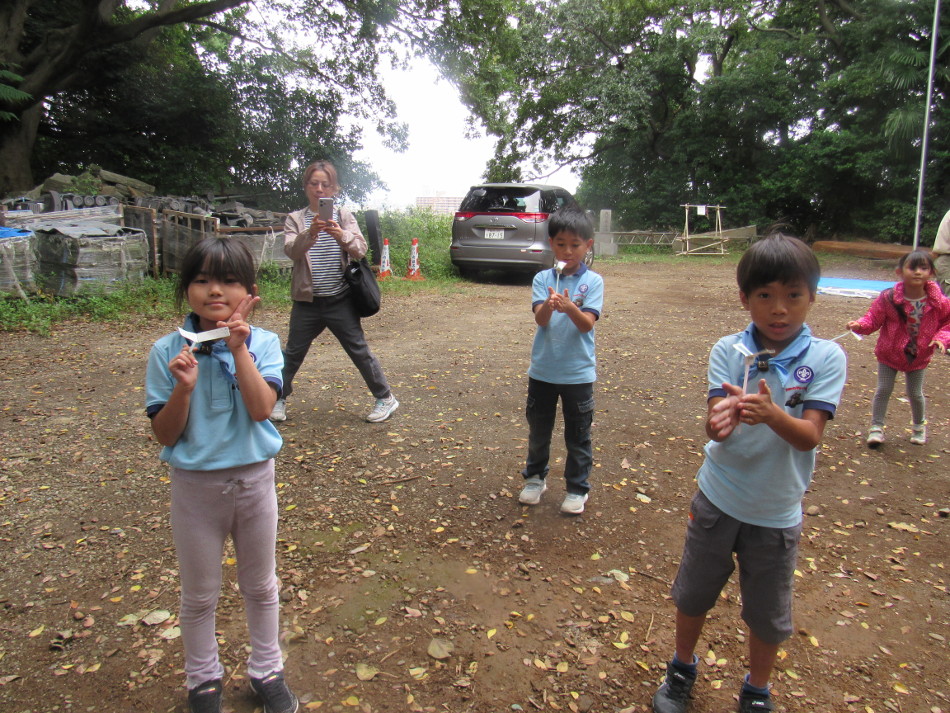 ポスター作りのあと、紙とんぼを作って遊びました。