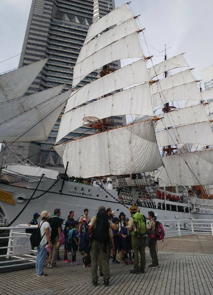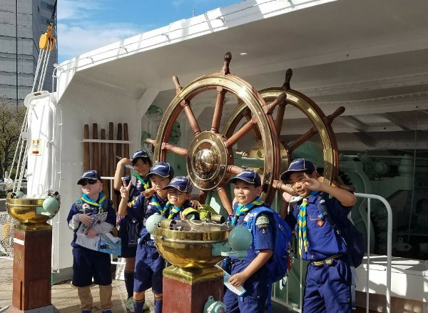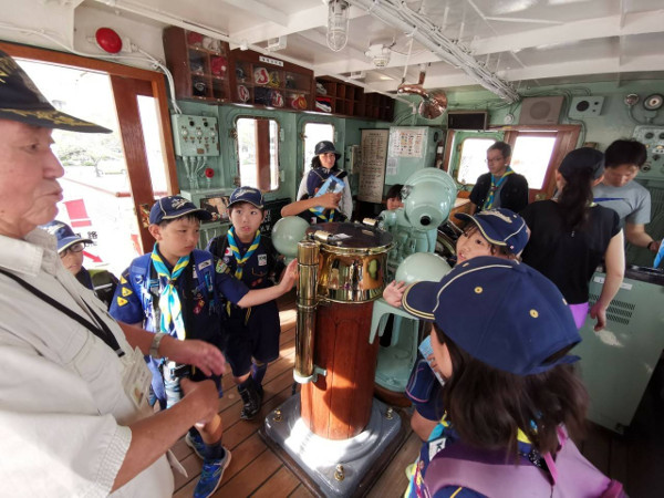 日本丸見学ではボランティアの方に説明して頂き、スカウトたち