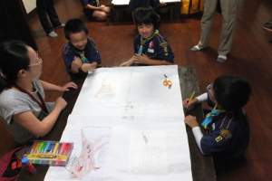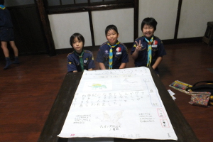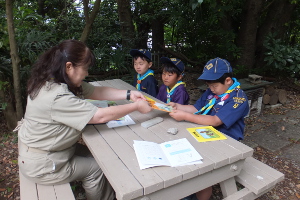 その後、今年4月にビーバー隊から上進して来た3人のスカウトは、「カブスカウト」とは何か?を勉強し、そし