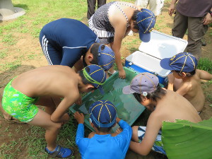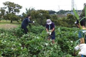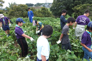 スカウトたちは草取りよりバッタ取りが楽しかったみたいです。