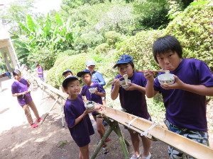 活動内容はほぼビーバー隊と同じですが、初日の工作は竹でマイ箸を作りました。午後はテント(秘密基地?)を張