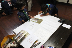 今夏期キャンプのテーマは「恐竜と原始時代」でした。そのキャンプ前、スカウトたちは恐竜や原始時代について調