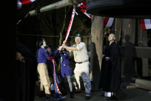 毎年、くまスカウト(小学5年生)は總持寺鐘つきに参加します。今年は3名が参加しました。