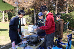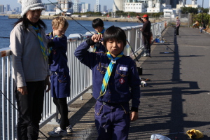 若洲海浜公園キャンプ場ではボーイ隊が一泊キャンプをしているのでサイト見学をした後、ボーイ隊に差し入れを