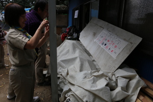 また、ラリー中には交流を目的に、出会った他団のスカウトとリボン交換(BVS)や名刺交換(CS)をしまし