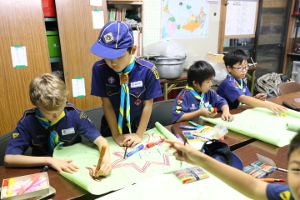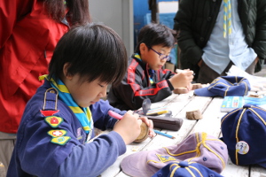 焼き芋会において、焼き芋が出来るまで、カブ隊はサツマイモを使って芋版を作り、コンテストをしました。