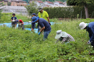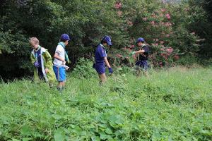 雑草が膝丈以上ありましたが、スカウトと保護者が協力し、ほとんどの雑草を取ることが出来ました。