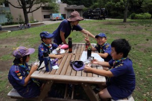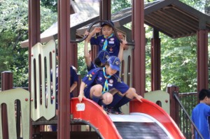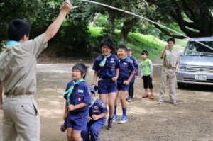 活動内容はビーバー隊とほぼ同じですが、初日は足柄森林公園丸太の森でカブ隊はピクニックではなく、 コース