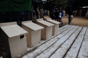 組(二人一組)で木材の寸法を測り、ノコギリや金づちを使って、4個の巣箱が完成しました。