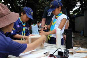 夏期キャンプ(大菩薩峠)宿舎前の林に設置する鳥の巣箱を作りました。