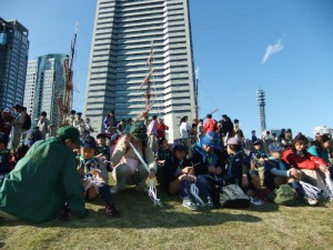 横浜地区40周年記念行事として日本丸メモリアルパークにて「野外であそぼう!横浜スカウトパーク」に参加し