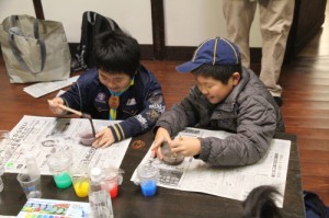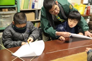 今日は餅つき会。餅を搗けるまでの間、ビーバースカウトと一緒にスライム作りやコマまわし、さらには1月14