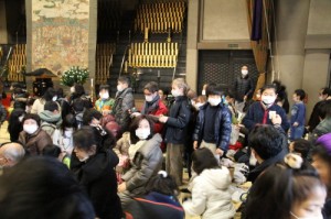 整理券を貰うため朝から行列ができていました。私たちは10時から並び、11時に大粗堂に入りました。