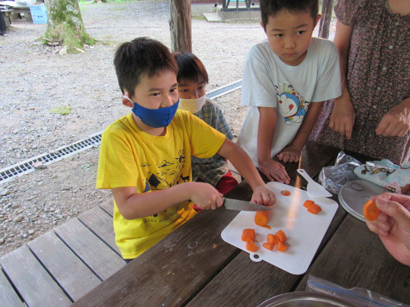 入村式の後、飯盒炊飯をしました。ビーバースカウトの分を含む