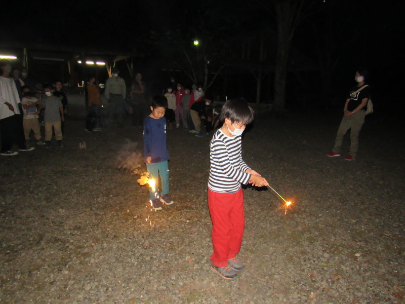 夜は花火をしました。