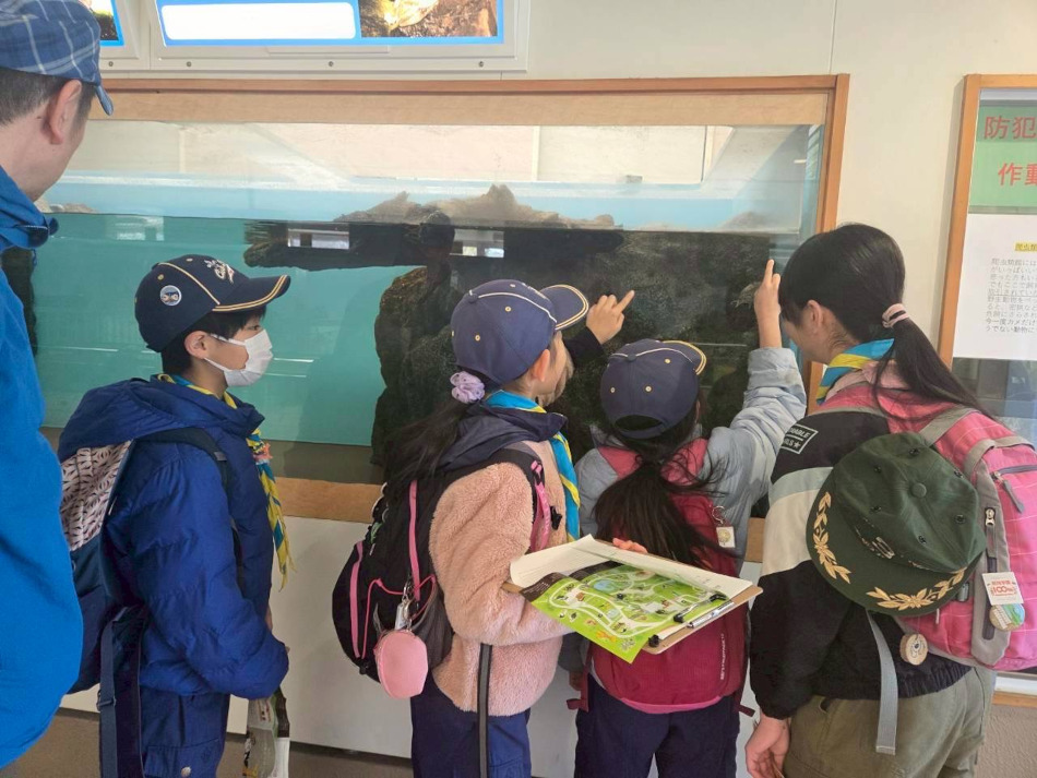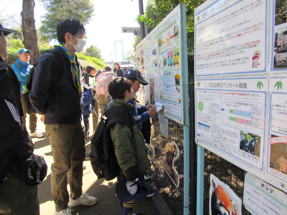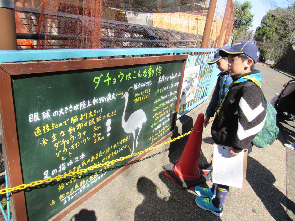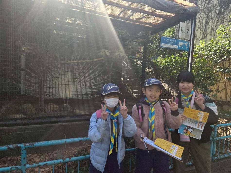 チャレンジ章(自然保護)を取得するため、ビーバー隊とデンコ ーチ(ボーイ隊)で野毛山動物園へ行きました。 各組は課題の「絶滅しそうな動物について」と「1種類の動物を 決め、その特性や食習慣について」を調べながら園内を回りまし た。