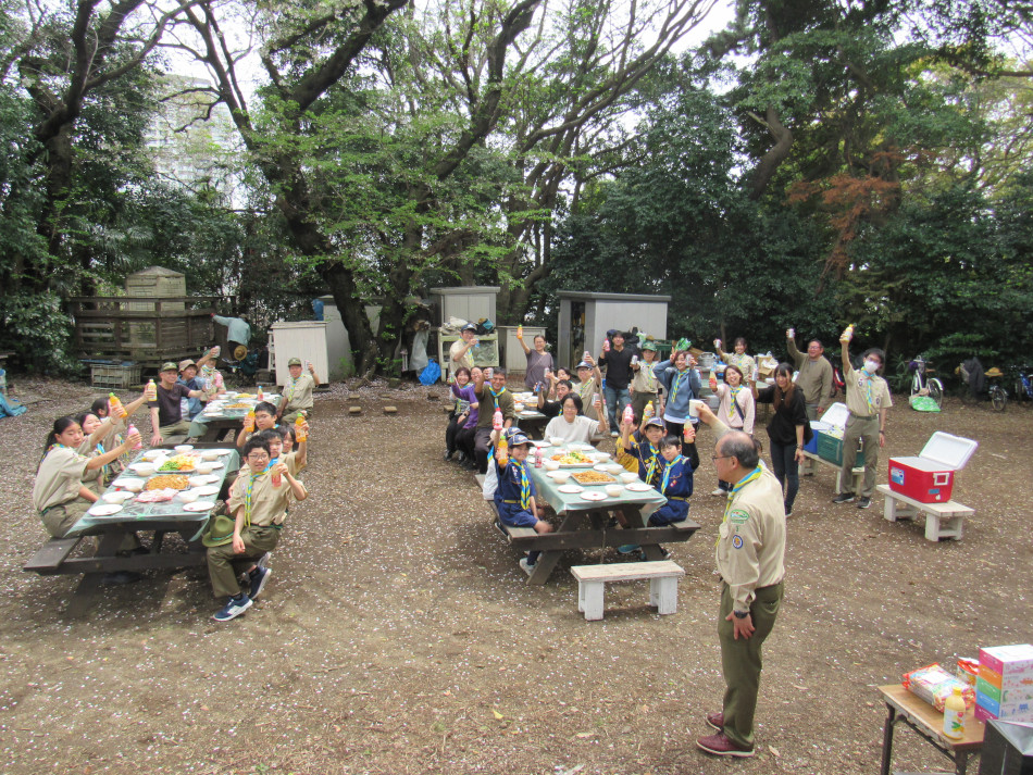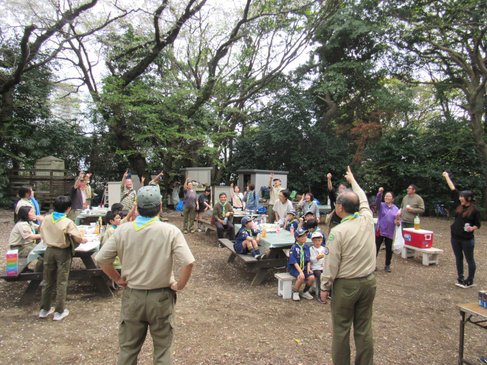 上進式終了後、総勢40名が集まり観桜会(お花見)を開催し